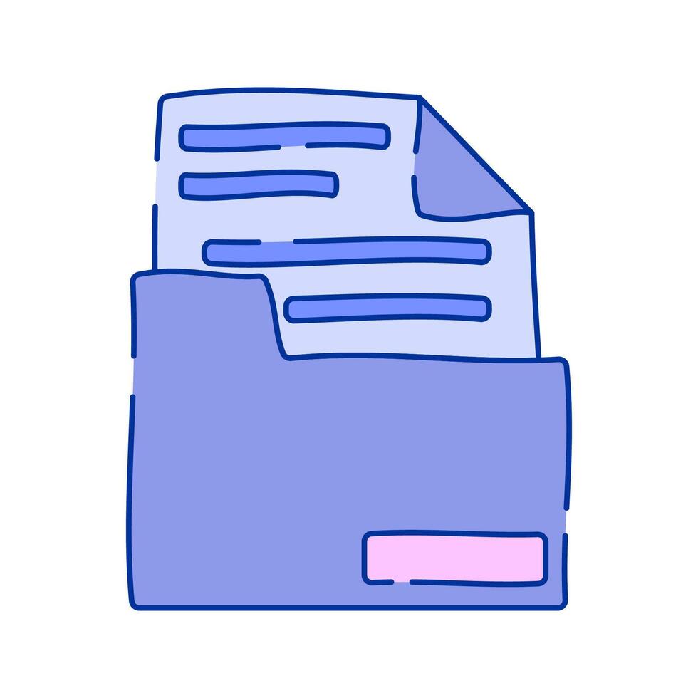 Folder with Documents Doodle style, blue folder filled with papers, symbolizing file storage and organization, ideal for business, office, and document management designs. vector