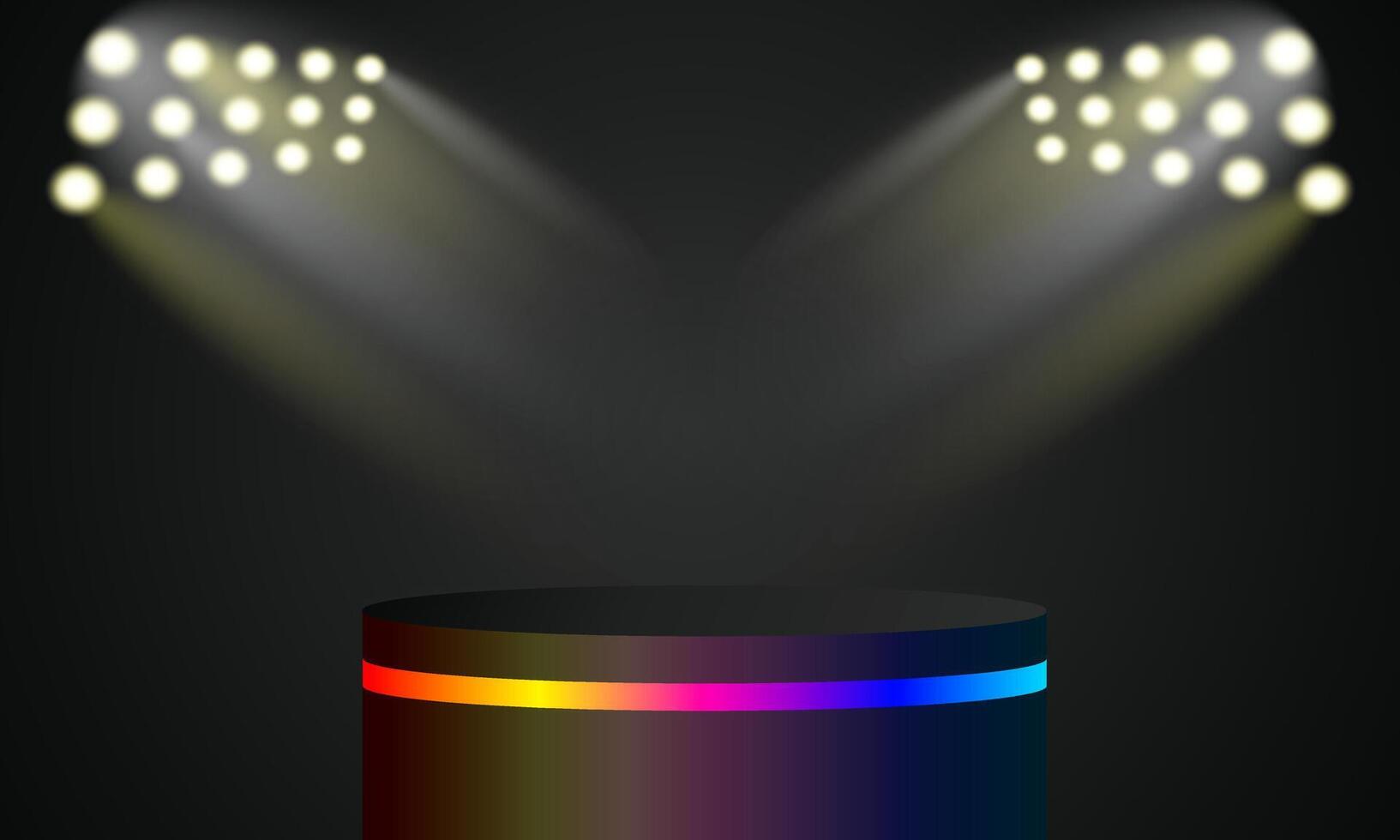 Empty podium with light frame glowing in the dark for product presentation. 3D illustration rendering Pro Vector