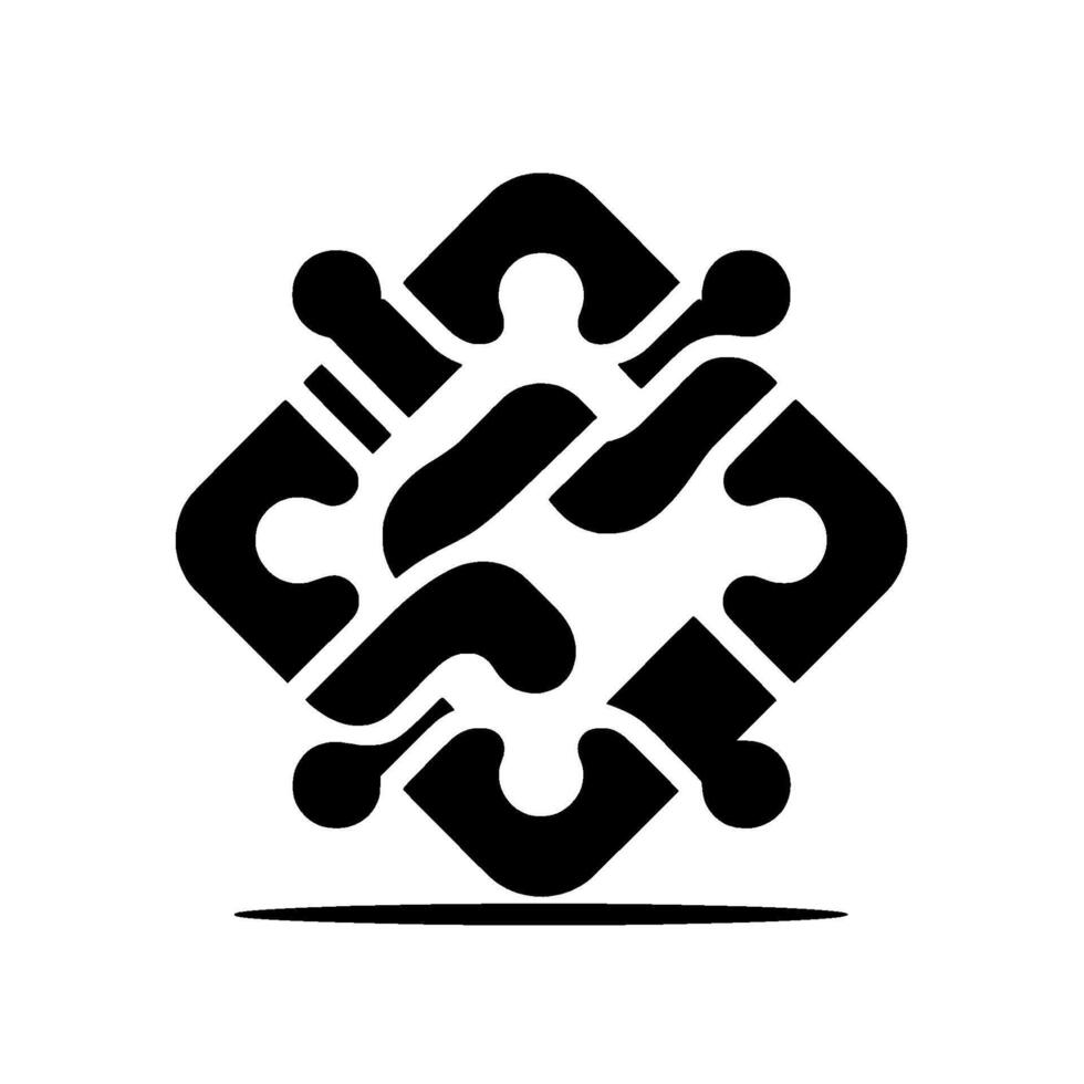 A symmetrical, abstract black and white with interlocking organic shapes, and a stylized, geometric form. Pro Vector