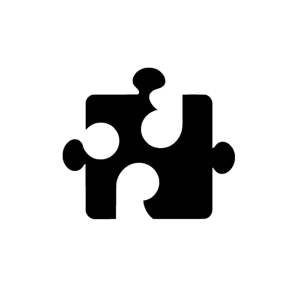 Isolated black puzzle piece with white insets and rounded edges floating on a light gray background with a shadow. vector