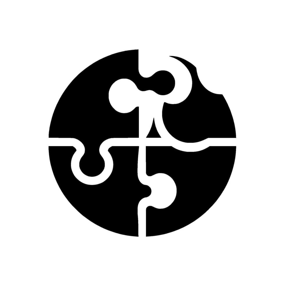 Isolated black and white puzzle four pieces assembled within a circle, featuring one missing section, on plain white background. Pro Vector