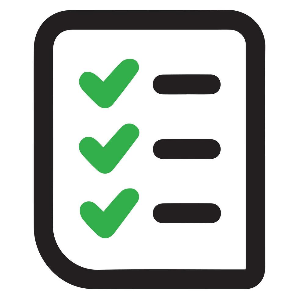 Minimalist Checklist Icon with Green Checkmarks and Black Outline on White Background vector
