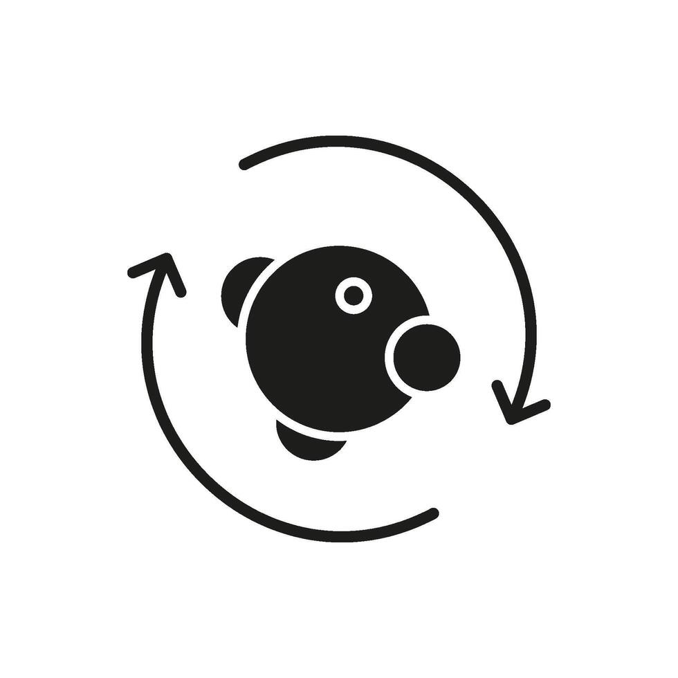 Atomic structure with arrows indicating motion solid icon. Atom movement and scientific dynamics silhouette symbol. Isolated illustration Pro Vector