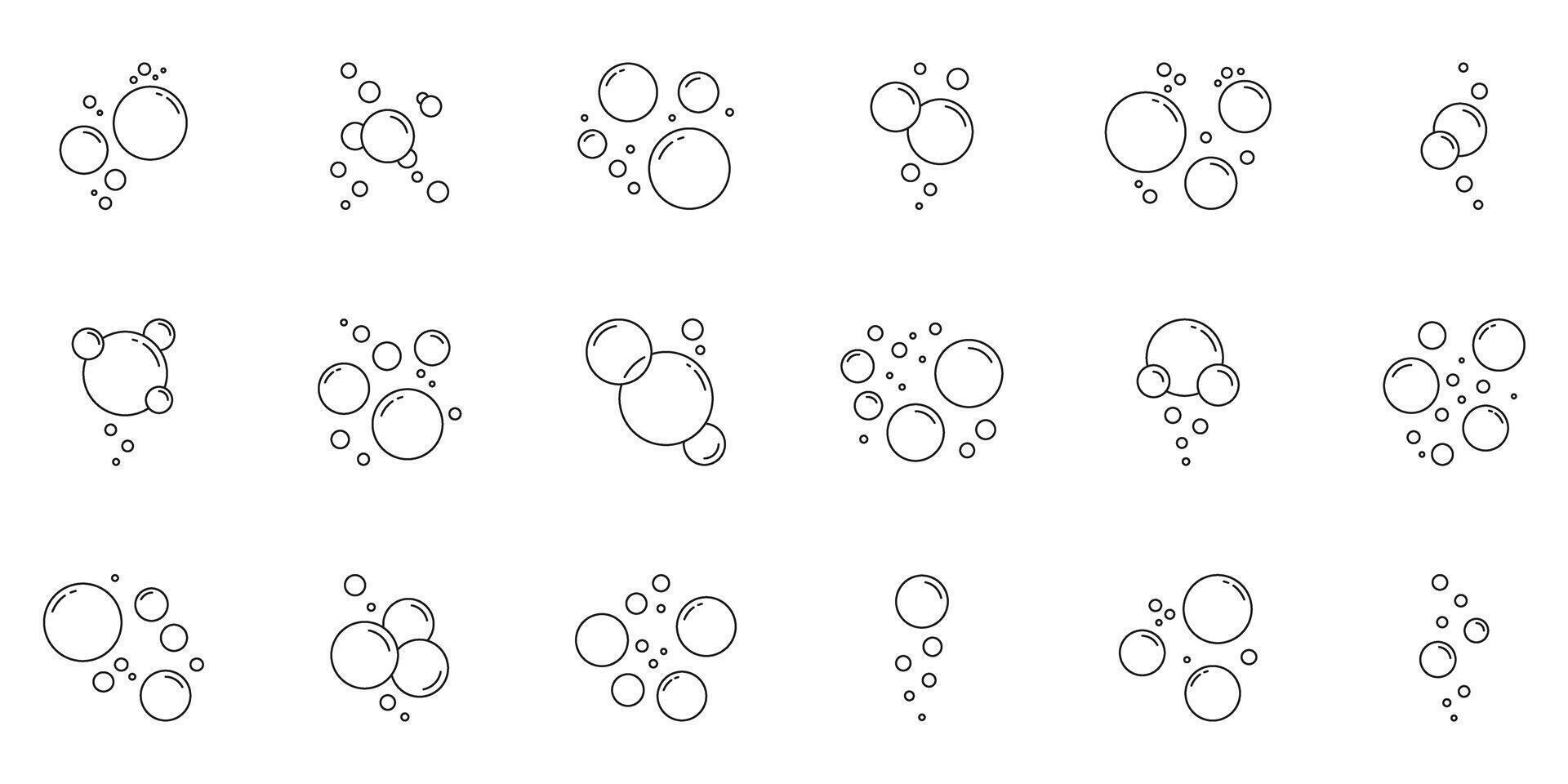 Soap Bubbles Line Icon Set. Cluster Of Floating Soapy Air Bubbles With Glossy Effects Outline Symbol Collection. Editable Stroke. Isolated Illustration Pro Vector
