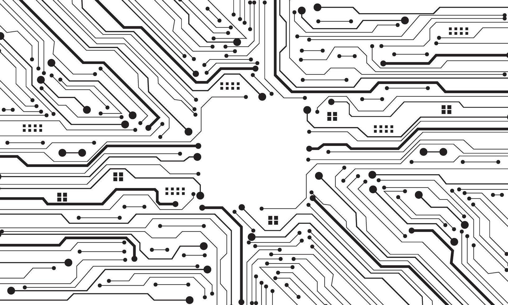 Abstract black circuit board technology connected lines electronics elements computer motherboard chip processor semiconductor digital on white background Pro Vector