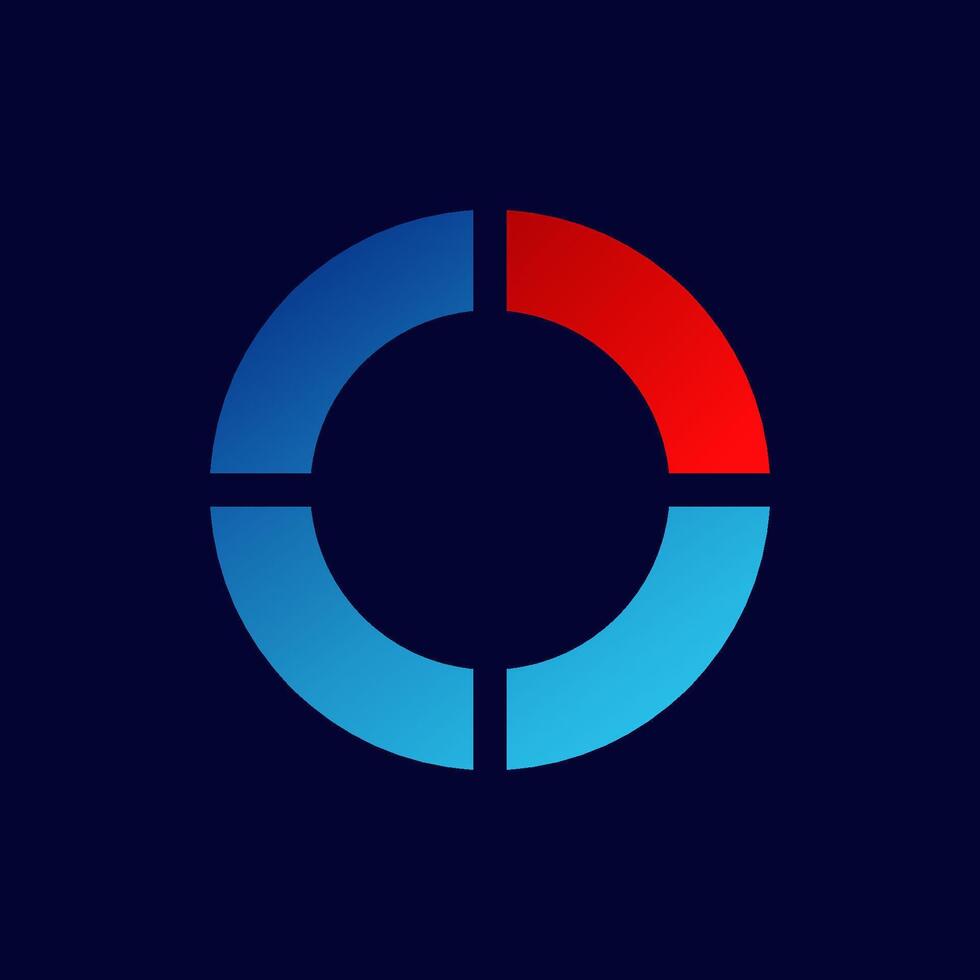 Blue and red circular chart icon representing data visualization and analytics Pro Vector