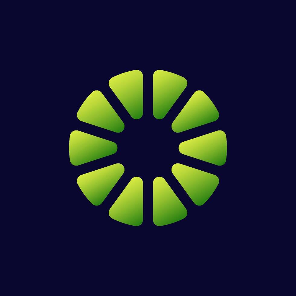 Green abstract circle emblem with gradual transition in unique spiral formation Pro Vector
