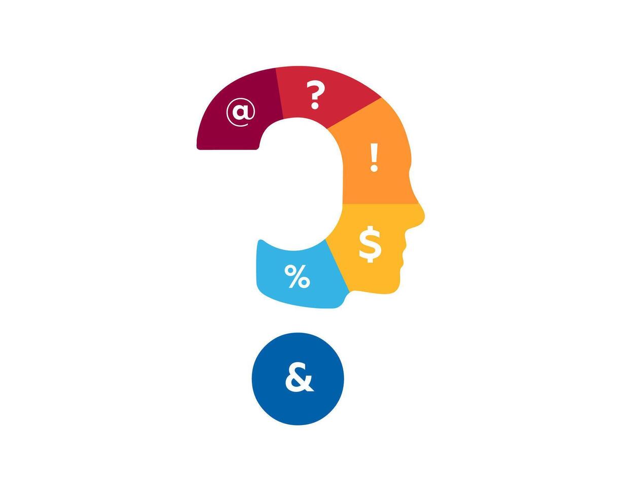 Abstract human head with symbols in question mark shape on clear white background Pro Vector