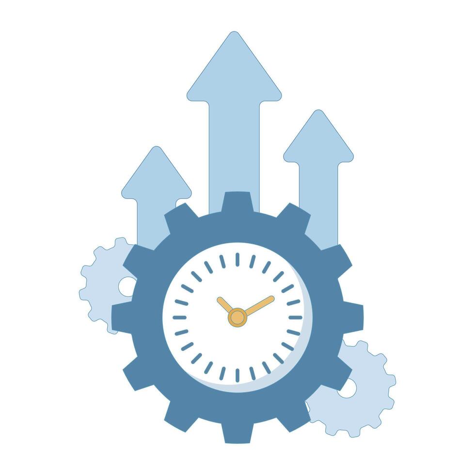 Productivity Concept. Clock with Arrows. Solutions to business problems, efficiency and innovation ideas, creative business. Flat cartoon design Illustration design on background. Pro Vector