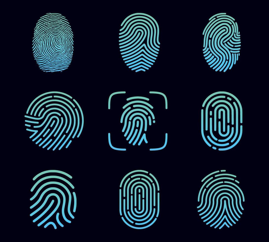 Futuristic biometric fingerprint scan with digital security theme Pro Vector