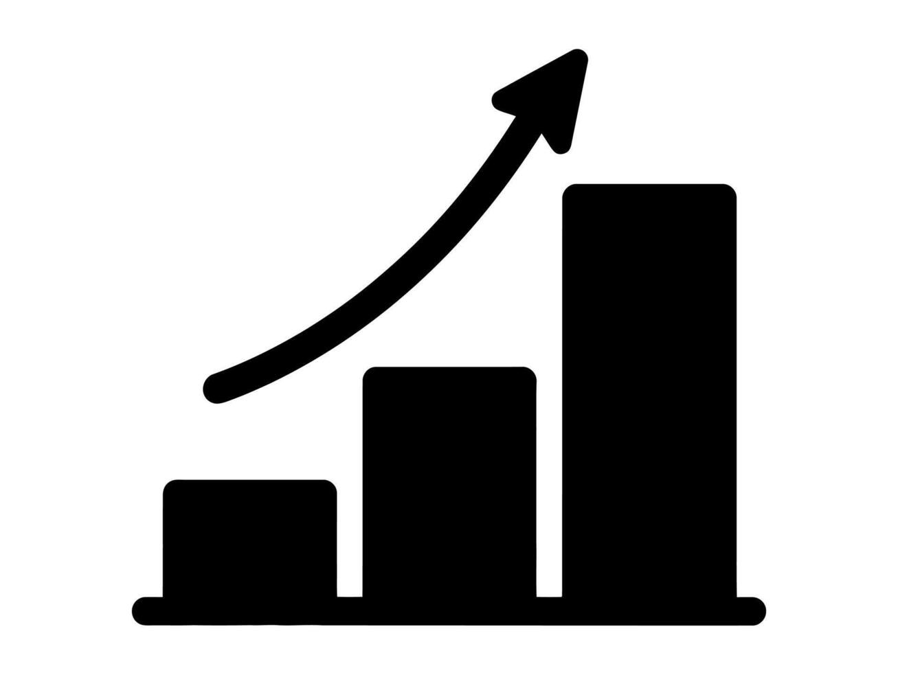 Simple black icon depicting a rising bar graph with an upward arrow. Ideal for business, finance, success, and data visualization concepts. Clean design for easy integration. Pro Vector
