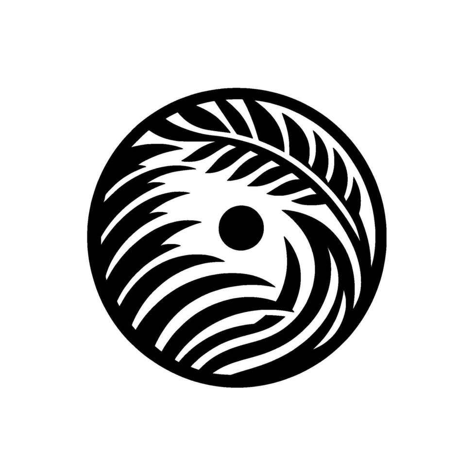 Abstract Black and White Circular Design A stylized fern and wave motif within a circle. vector