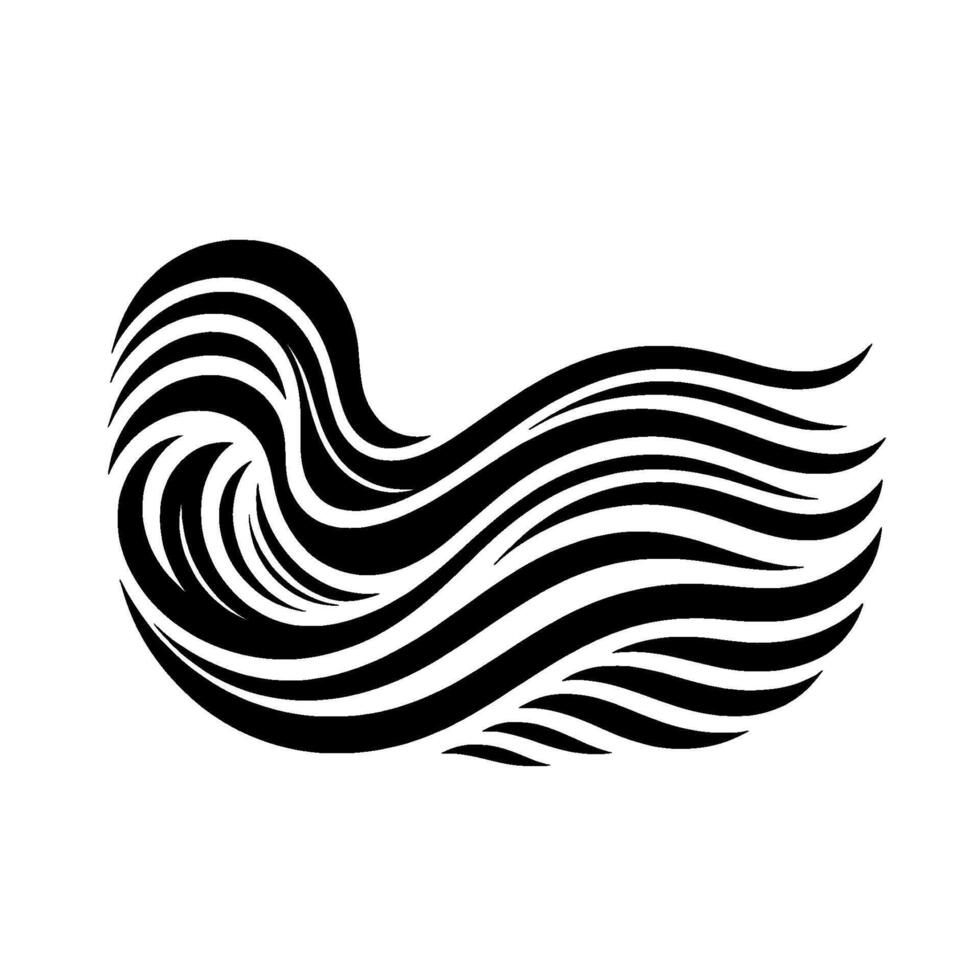 Abstract black hair silhouette composed of flowing wavy lines on a white background with a subtle shadow, creating a stylish, modern design. vector