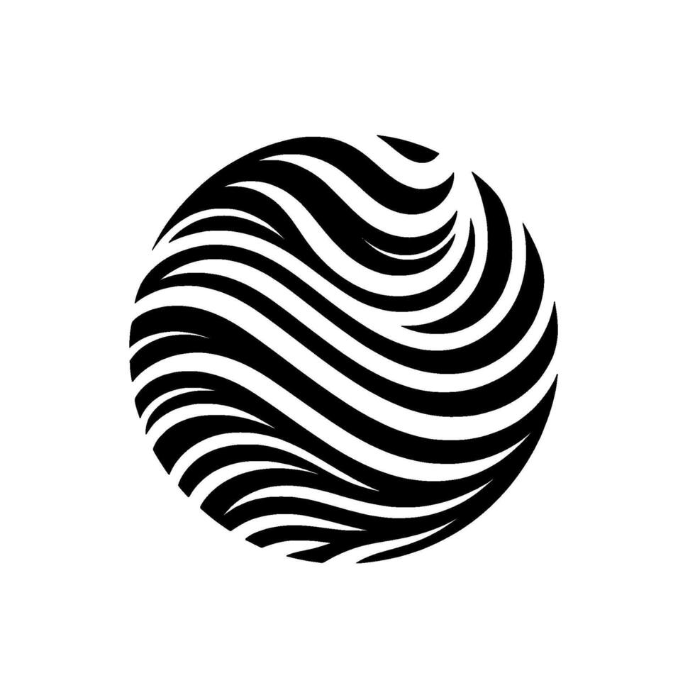 Abstract monochrome sphere composed of fluid, black and white, wavy stripes, creating a dynamic and visually arresting design. vector