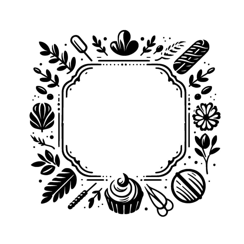 Decorative Black and White Frame Culinary Botanical Elements Surrounding an Open Space vector
