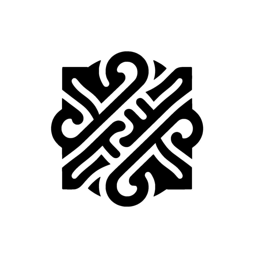 Geometric Black and White Ornamental Featuring Curvilinear and Angular Elements in Symmetrical Arrangement. vector