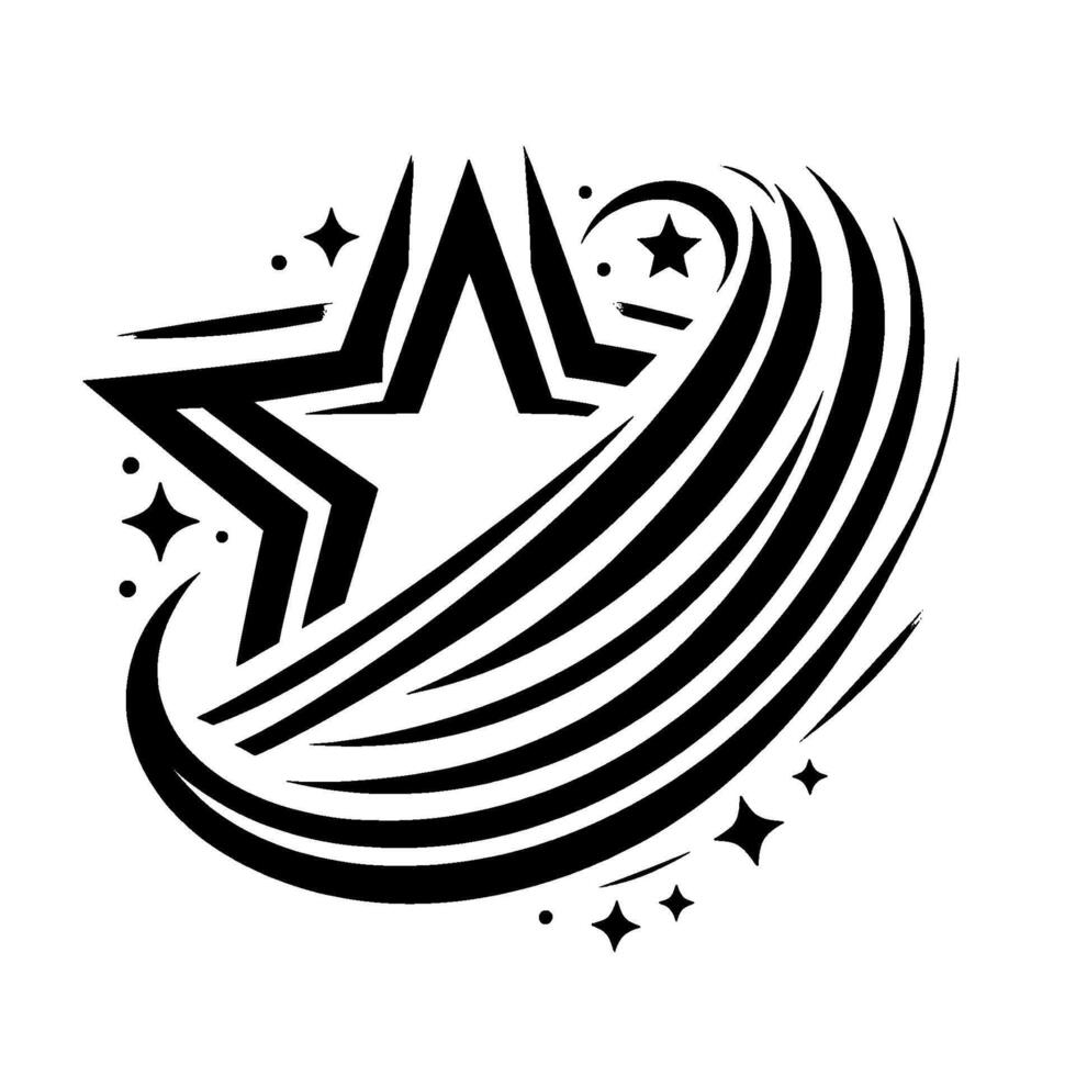 of stylized starburst, with a star composed of multiple black and white layered lines, set on a white background. vector