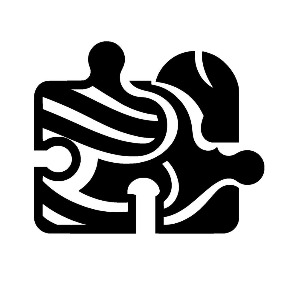Abstract black and white puzzle pieces interwoven with contrasting lines, forming a dynamic and intricate on a bright white background. vector