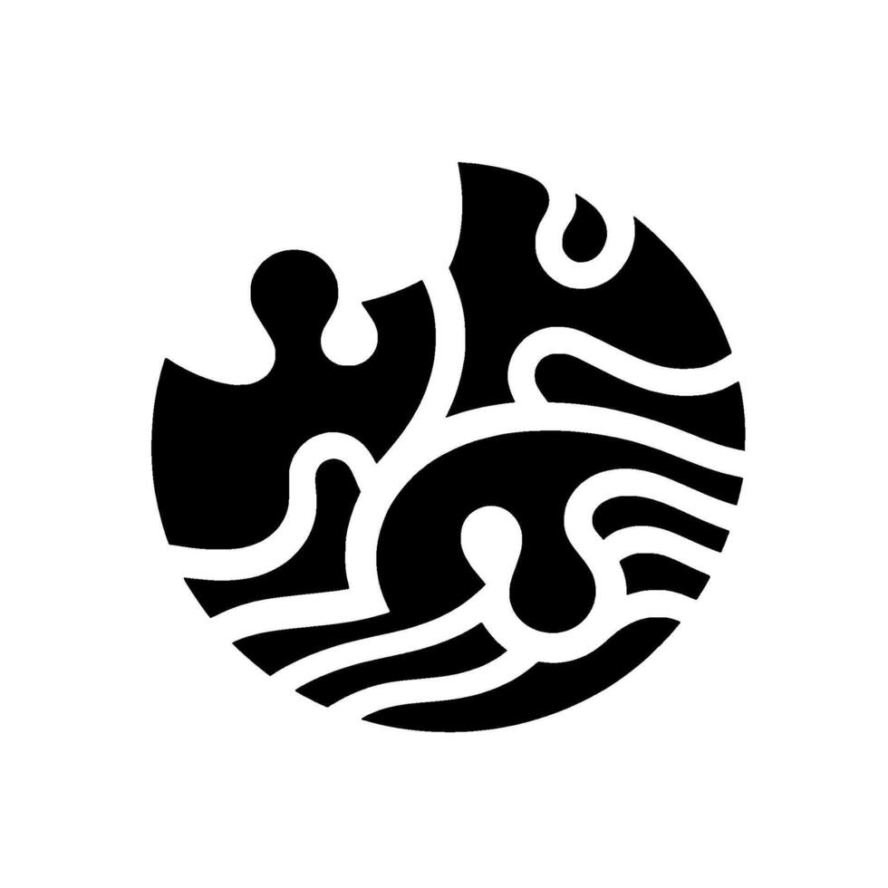 Abstract black and white circular featuring flowing, wavelike patterns and puzzle piece elements, incomplete composition. vector