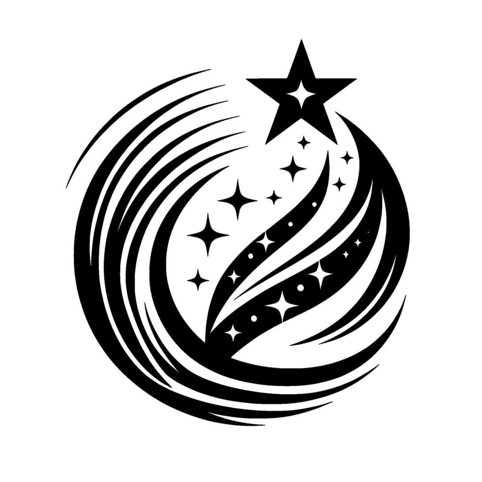 Abstract Black and White Illustration of a Shooting Star Comet with a Starburst Galaxy and Circular Swirl on White Background vector