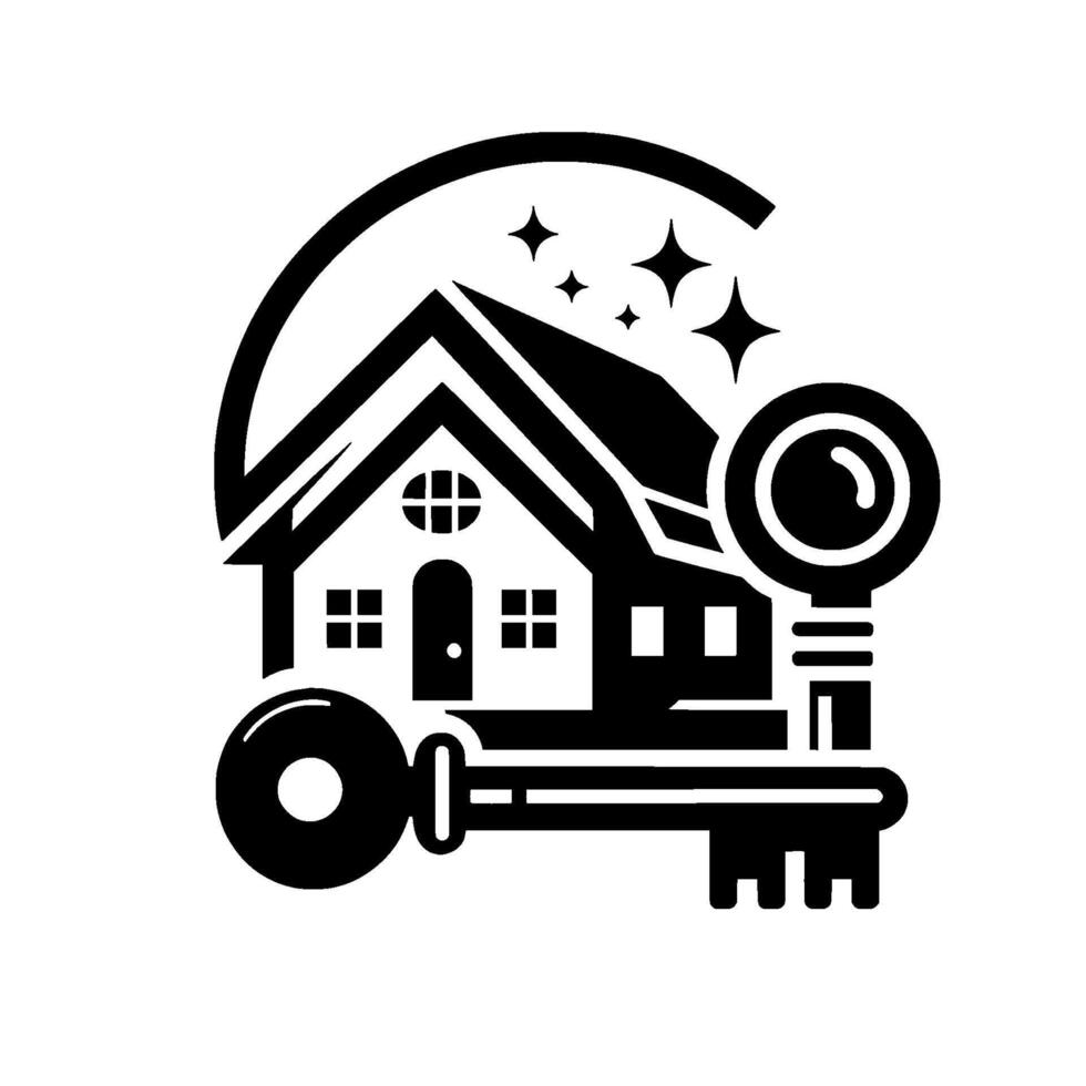 illustration of a house and key, symbolizing homeownership, security, and new beginnings, with sparkling elements. vector