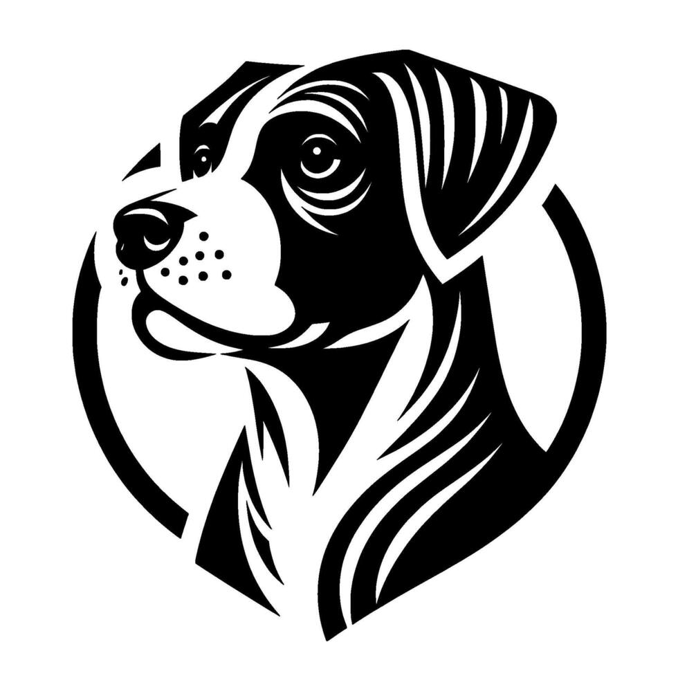 Stylized Black and White Dog Portrait Within a Circular Frame, Showing a Side Profile View, Minimalist . vector