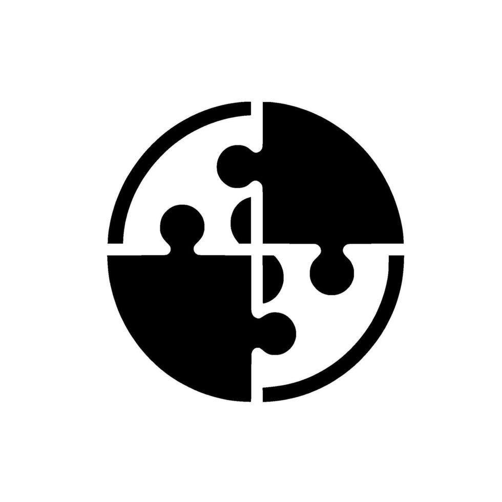 Black and White Circular Puzzle Illustration Four Pieces Interlocked, Shadow Effect on White Background, Representing Unity and Completion. vector