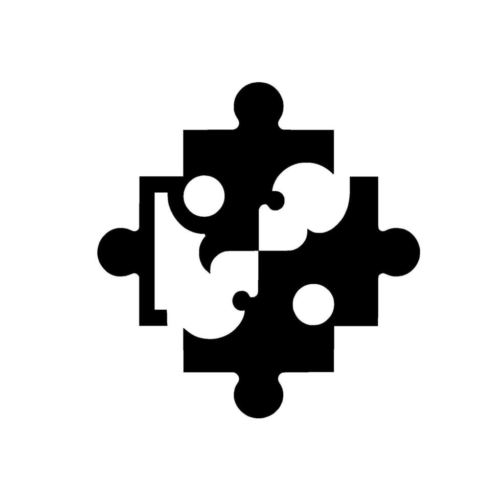 Four Interlocking Puzzle Pieces in Black and White forming a Complete Unit on a White Background. vector