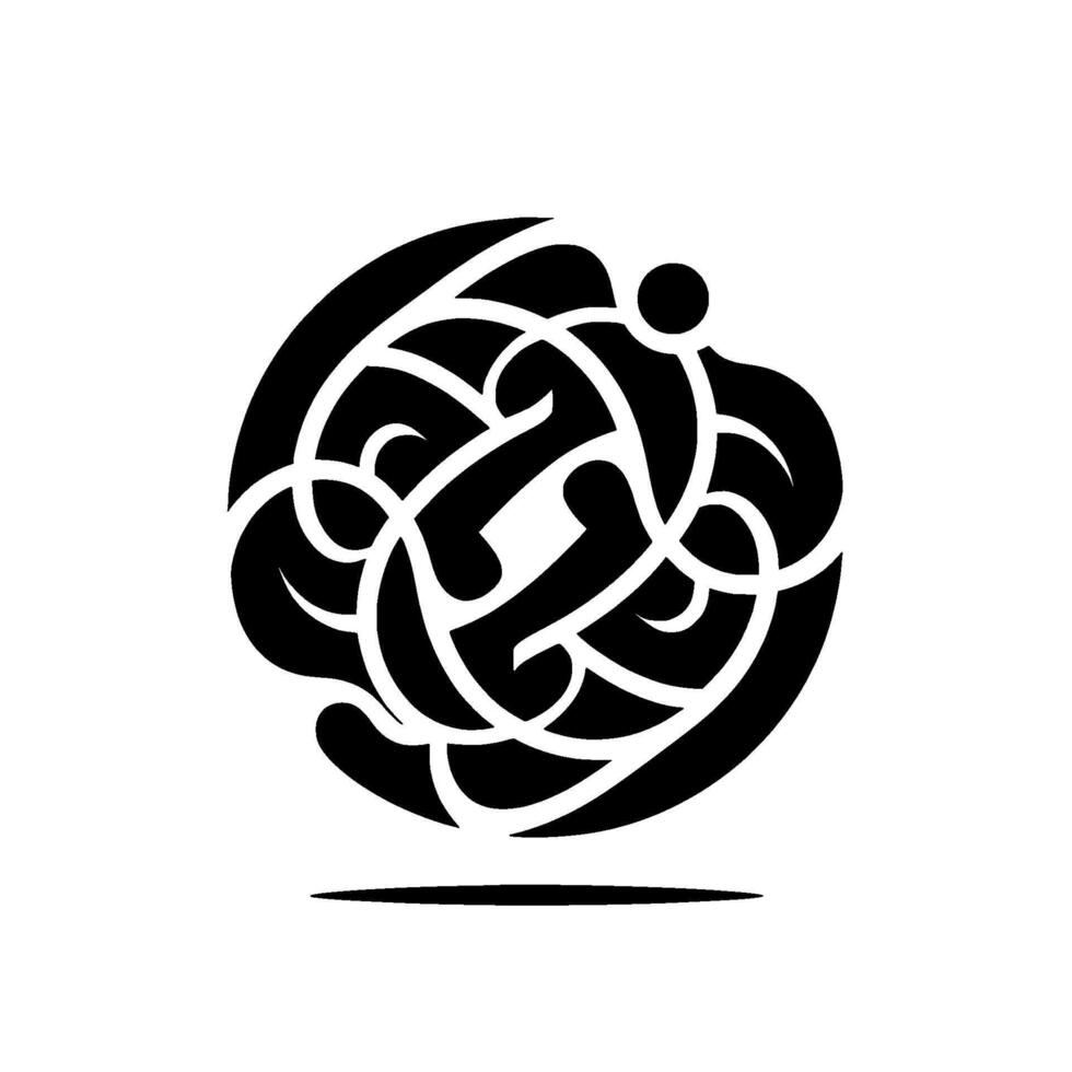 Complex Black and White Abstract Featuring Intertwined Lines, Curving Shapes, and a Rounded Top with a Small Sphere vector