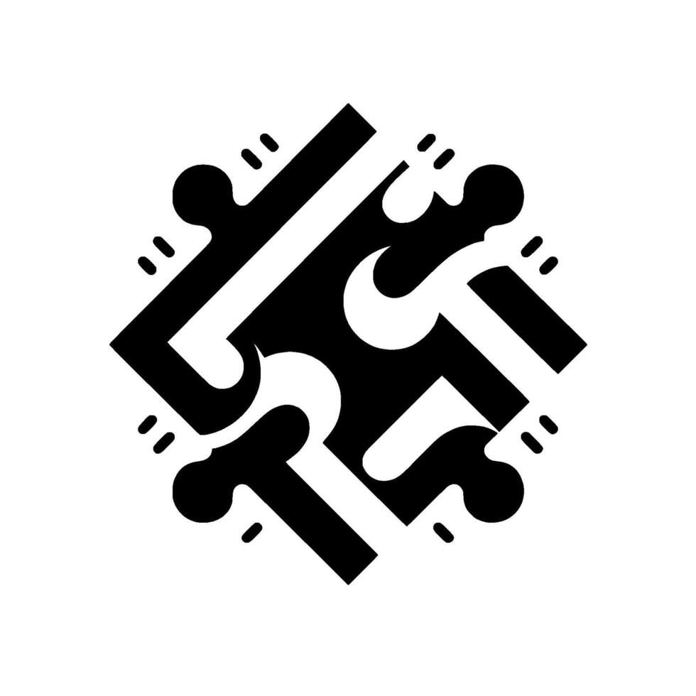 Abstract Black and White Geometric SquareShaped, Symmetrical, and Symbolic, with Rounded Elements and Dot Decorations on a White Backdrop. vector
