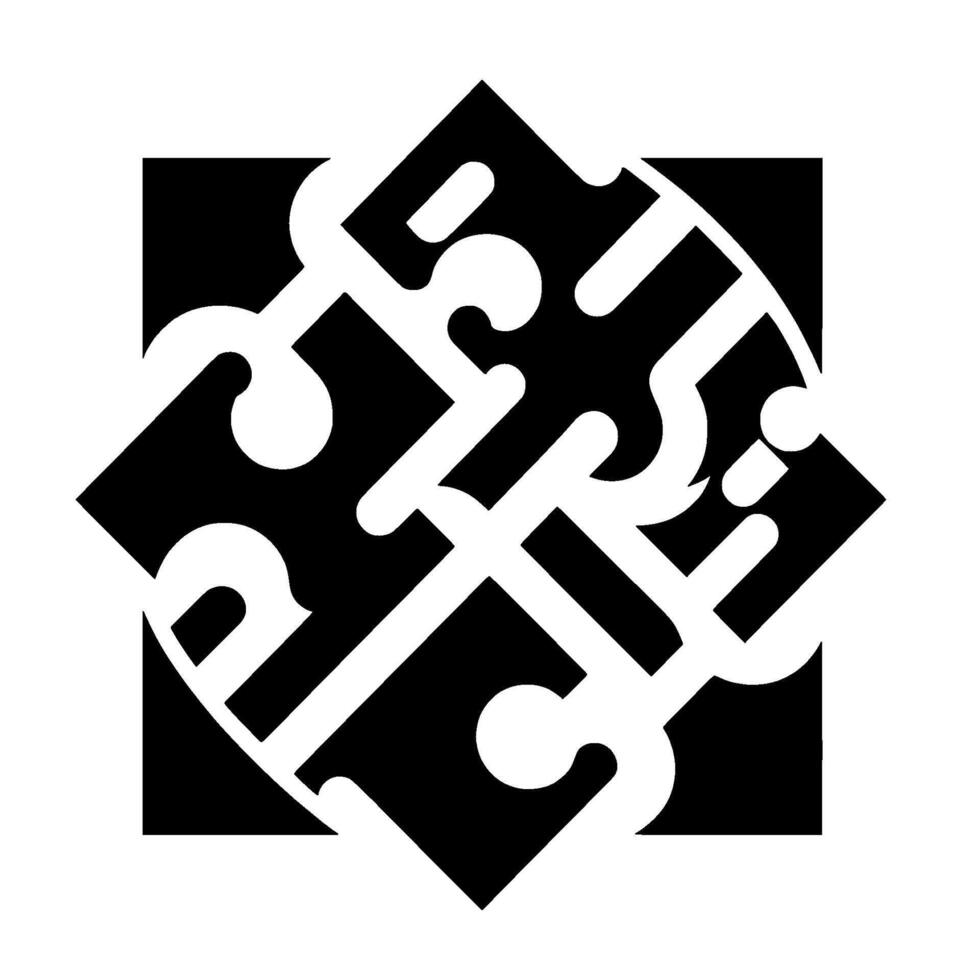 Intertwined Geometric Composition Black Square and Circular Shapes with Intersecting White Forms, Abstract and Minimalist Art. Free Vector