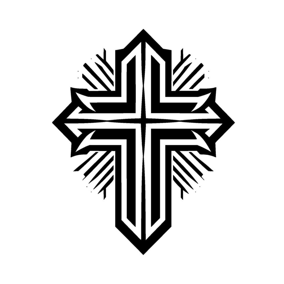 Geometric Black and White Cross with Radiating Lines and Sharp Angles on a Bright Background. vector