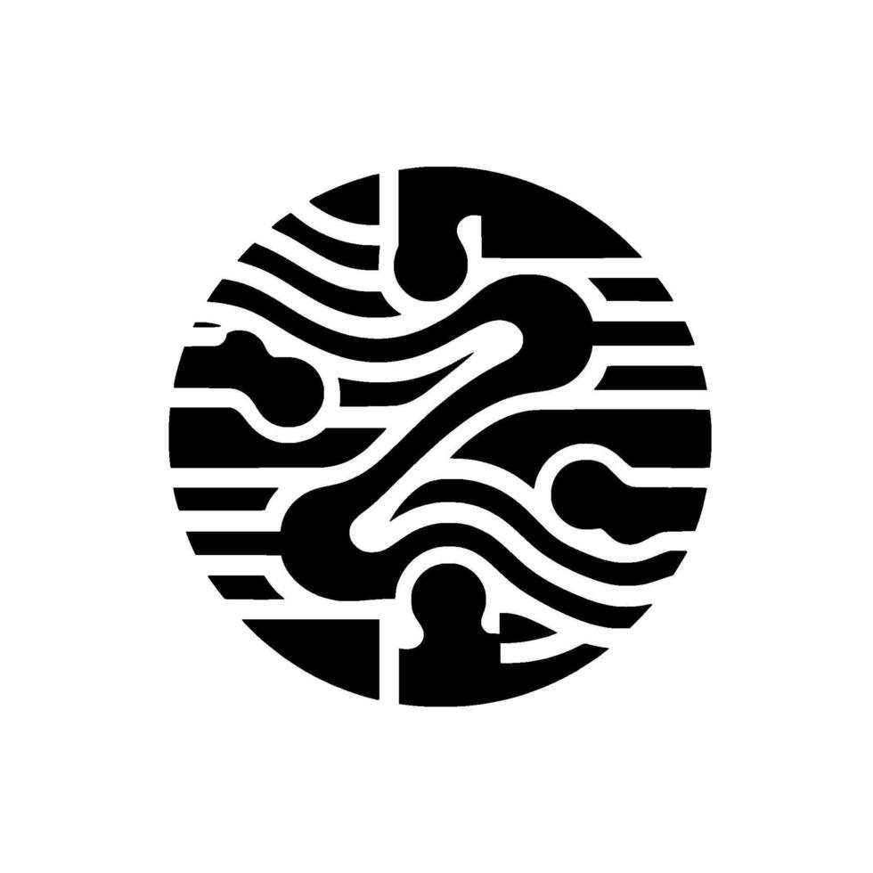 Abstract black and white within a circular frame, a balance of organic flowing lines and structured shapes. vector