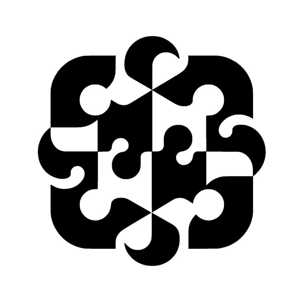 Abstract Geometric Puzzle in Black and White, Featuring Interlocking Shapes and a Balanced Composition. vector