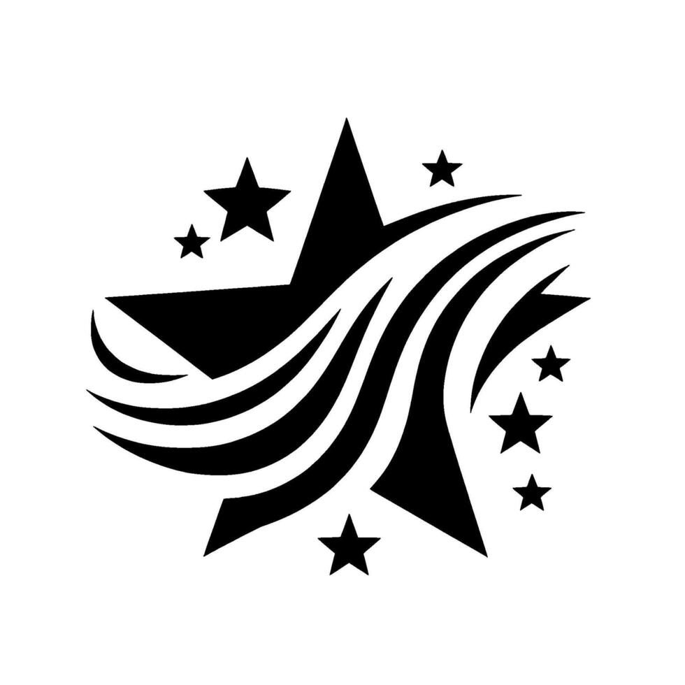 Black and white minimalist A large star with flowing stylized lines and surrounding stars, creating a dynamic and modern visual effect. vector