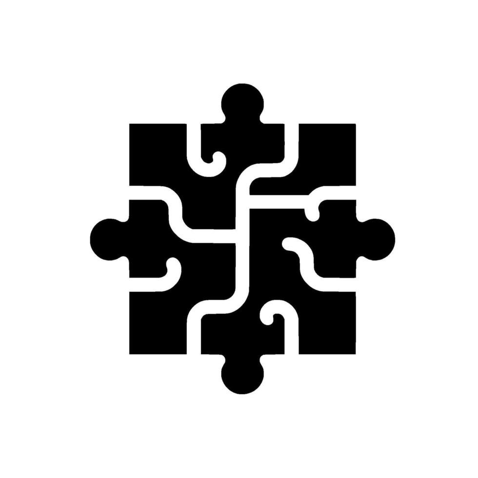 Isolated Black and White Puzzle Piece Centered in a White Circle, Symbolizing Connection, Problem Solving Strategy. vector