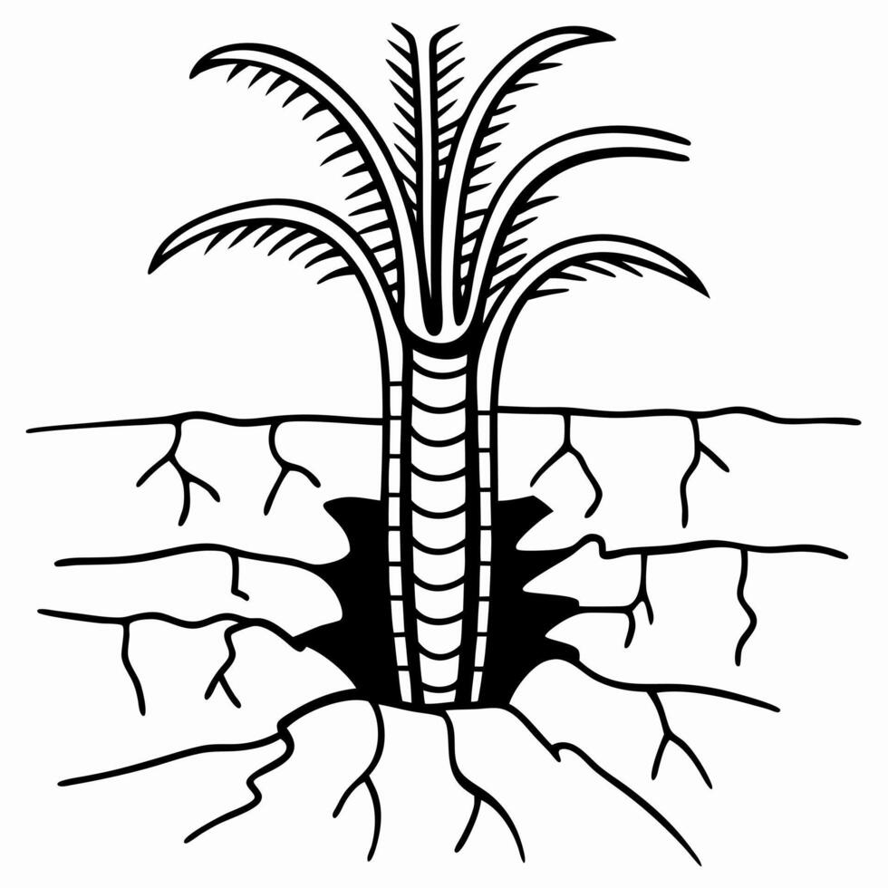 drawing of a palm tree emerging from cracked ground, symbolizing resilience and growth Pro Vector