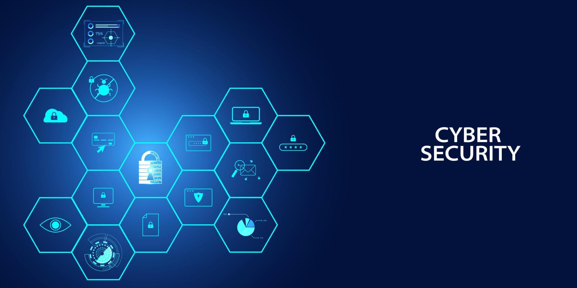 abstract padlock cyber security with hexagon icons concept Protection of information in the online world, cyber personal information, internet, preventing internet theft Pro Vector