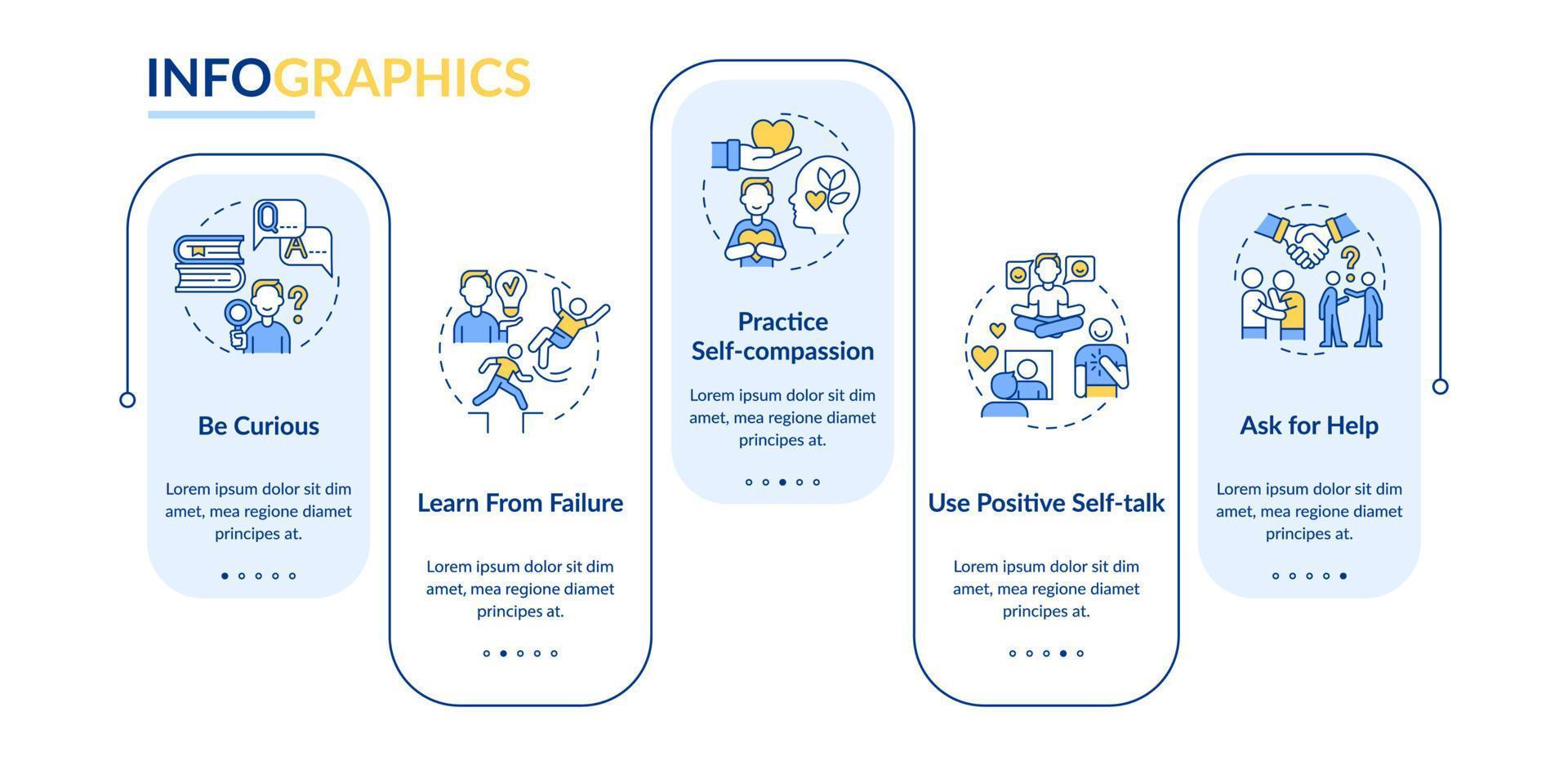 Happiness mindset strategies vector infographic template. Presentation outline design elements. Data visualization with 5 steps. Process timeline info chart. Workflow layout with line icons Pro Vector