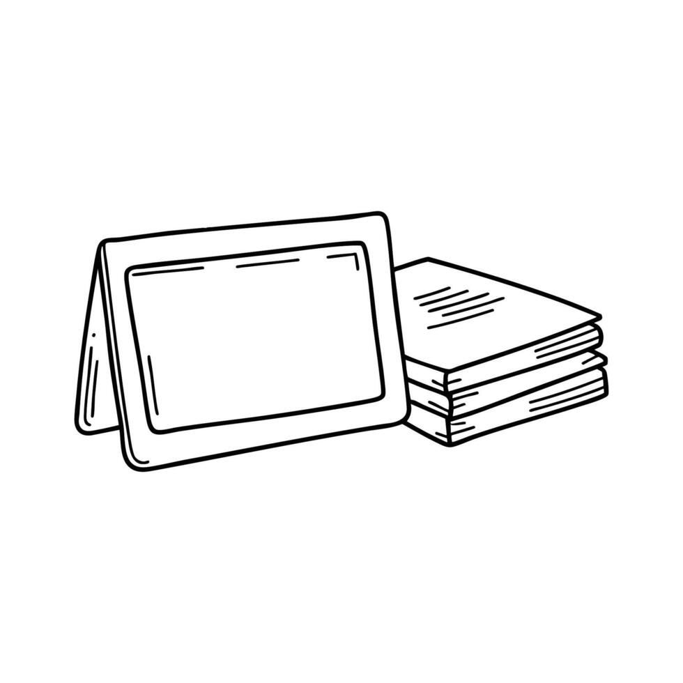 Nameplate displayed on a meeting table beside a stack of documents Pro Vector
