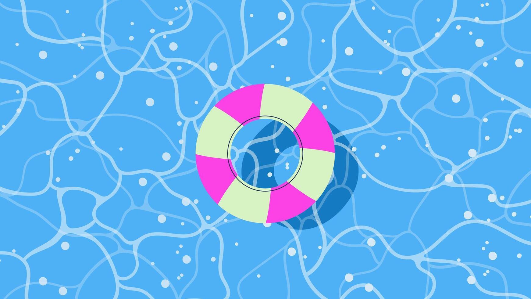 Blue Water swimming pool with float ring center background with copy space Pro Vector