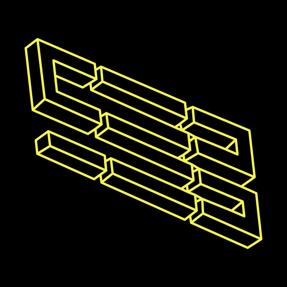 Impossible shapes. Sacred geometry figures. Optical illusion. Abstract eternal geometric objects. Impossible endless outline. Line art. Optical art. Impossible geometry shape on a black background. Pro Vector