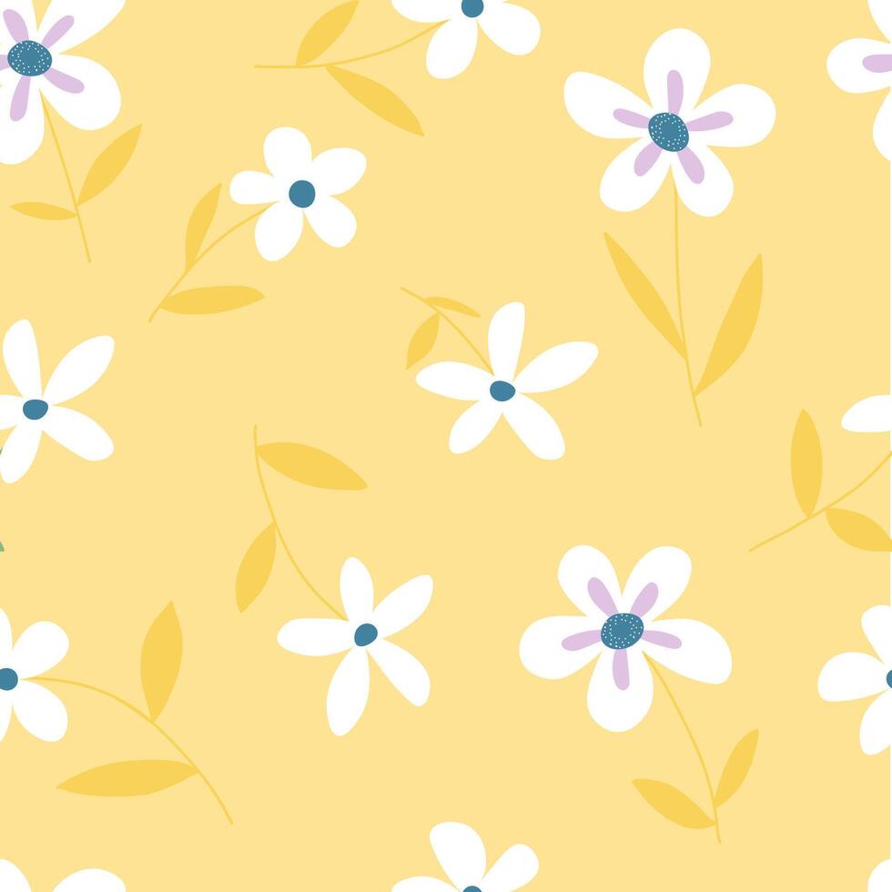 A botanical pattern with white flowers on a yellow background. Seamless spring texture Pro Vector