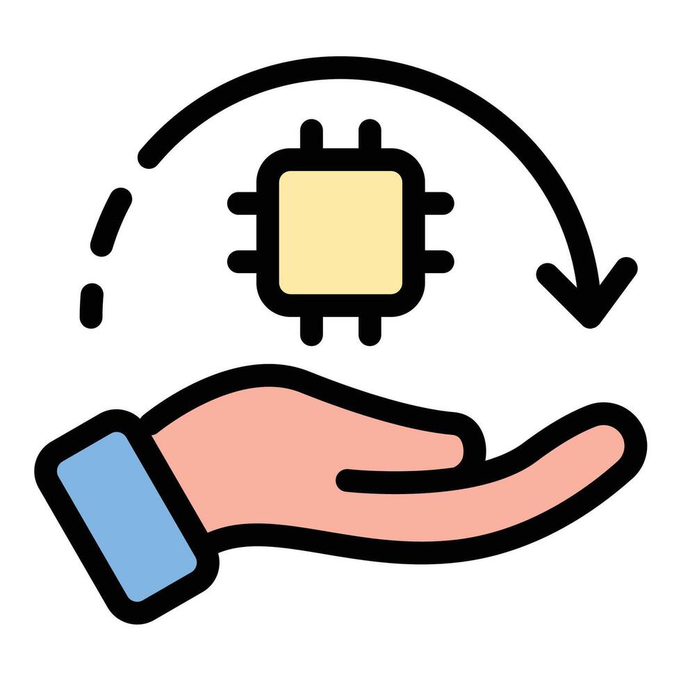 Chip implant icon flat line style illustration representing embedded microchips in biological or technological applications, suitable for healthcare, security, and advanced technology fields.. Pro Vector
