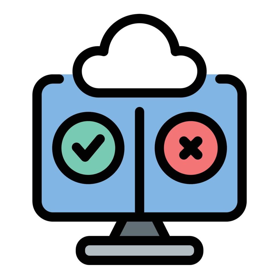 Cloud computing testing icon in flat line style representing system evaluation performance assessment and software reliability ideal for IT infrastructure quality assurance and digital solutions Pro Vector