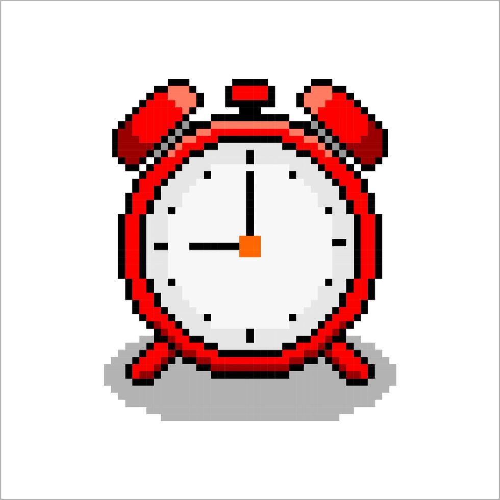 Pixel art of clock. Pixelated clock time icon. Red clock pixel. Pro Vector