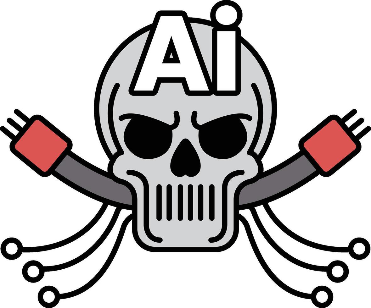 A skull with a red wire sticking out of it with the letters AI above it Pro Vector
