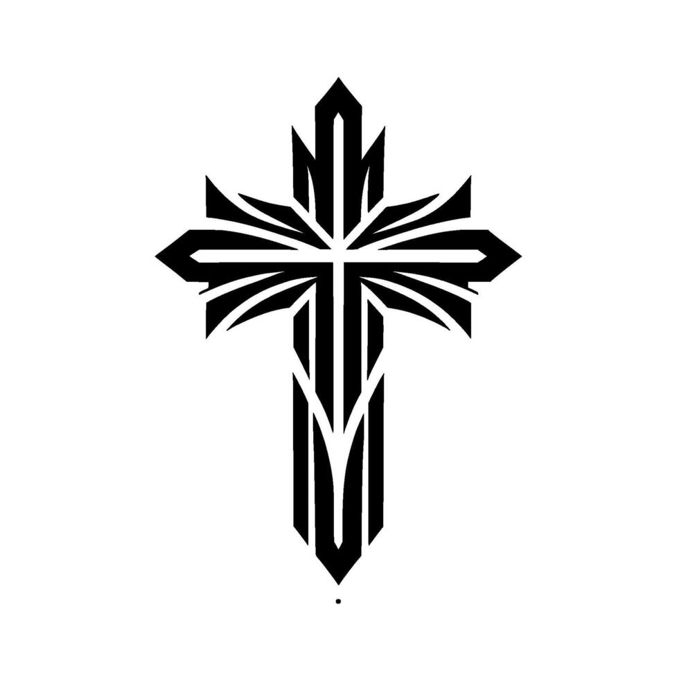 Bold, geometric black cross with a stylized, angular aesthetic set against a crisp white background. vector