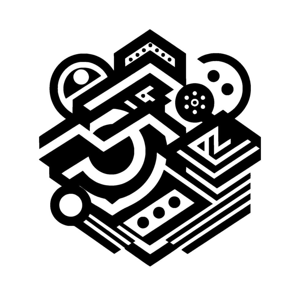 Geometric Monochrome Abstraction of Interlocking Shapes, Circles, Dots, and Lines in a Cubist and Bauhaus Inspired Design. Pro Vector