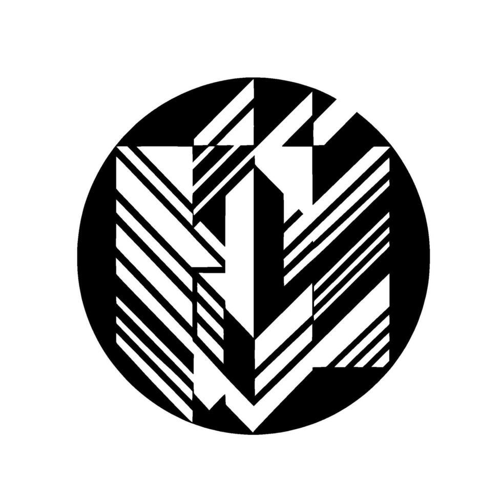 Abstract Geometric Composition A Black and White of Angular Shapes, Stripes, and Solids Within a Circle. Free Vector